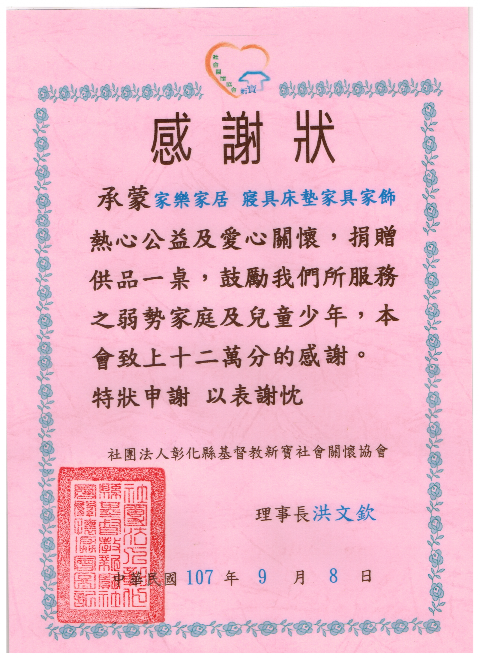 2018《社團法人彰化縣基督教新寶社會關懷協會》