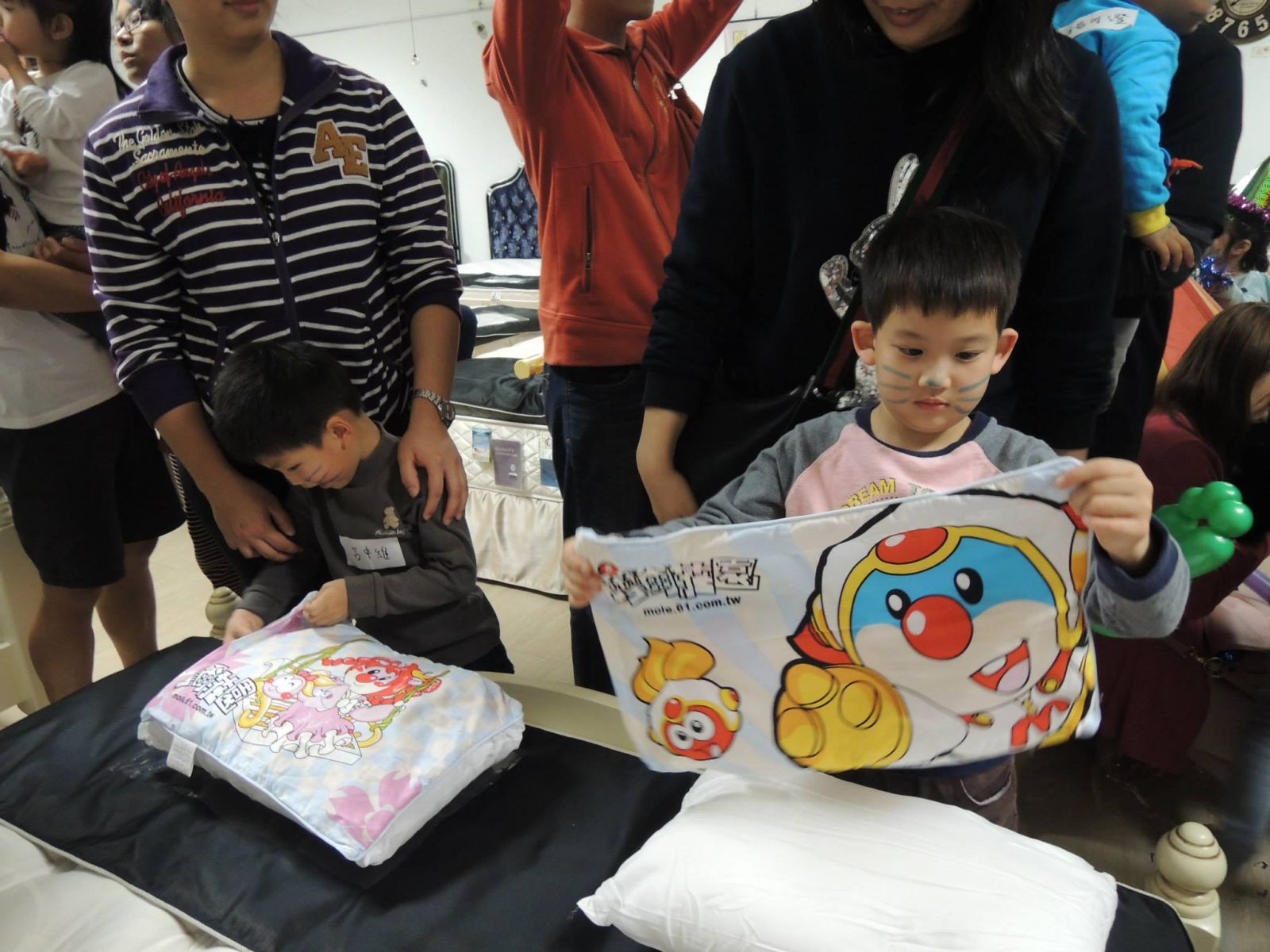 看到孩子們興奮的跟著小丑先生時而歡呼時而扭動屁股開心的跳耀著,我們看到每一個小寶貝臉上掛滿了滿足的神情,爸爸媽媽們也開心的忙著幫孩子們拍照,記錄下這一刻永恆的回憶...就在小丑變出氣球滿天飛舞及孩子們七彩的派對帽穿梭現場的同時,精彩的趣味魔術秀登場,逗得大小朋友都樂得合不攏嘴呢!! 緊接著上場的套枕頭大賽,每個小朋友都使出吃奶的力氣想盡辦法將枕頭塞進枕頭套裡,看他們可愛認真的模樣,真是卡哇依!! 臨時加碼的把拔枕頭PK賽,我們請出現場有到的把拔通通來到台前一較高下,現場的氣氛真是HIGH到ㄌ最高點~~最後,小朋友們通通都獲得了一份參加獎,開心的蹦跳,嘴裡還囔著不想回家呢^^... 孩子們,我們打勾勾,明年再一起來家樂家居鬧翻天!! 祝福你們都有一個美滿開心的兒童節!!