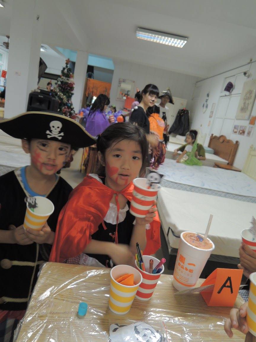 "哇! 爸爸~你臉上...好多顏色耶!!" 孩子瞪大眼興奮的說著....是的,這次讓我們很感動的,是不只是孩子裝扮,我們還看到好多爸爸媽媽這次也下海跟著又唱又跳又裝扮!
