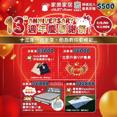 🎊家樂家居 𝑱𝒂𝒍𝒕 𝑯𝒐𝒎𝒆𝟏𝟑週年生日快樂🎂 𝟏𝟑年來,我們在社頭深耕,就像生活裡的花邊🌸 點綴出無數美好時光與精彩回憶📽️ 🔥𝟏𝟑週年慶火熱開跑🏃♀️ ⏰活動日期:即日起~𝟏𝟏/...