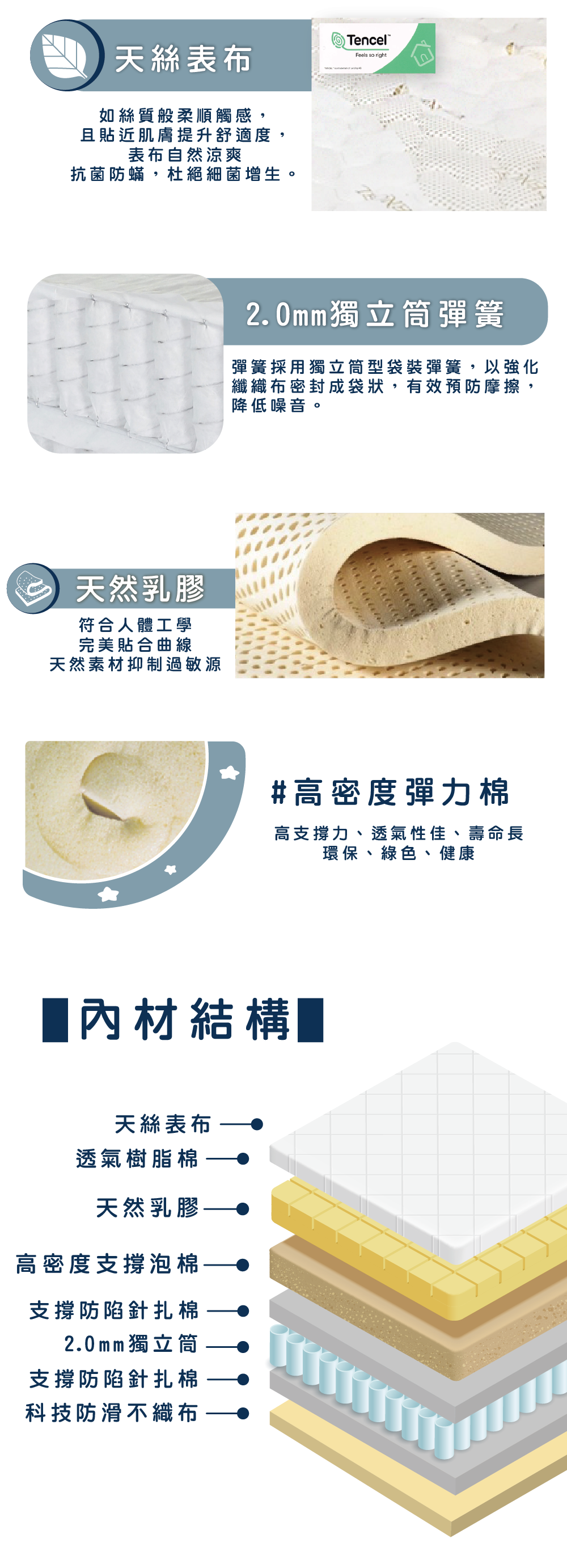 天然乳膠,抑制過敏源,工學設計貼合身體曲線