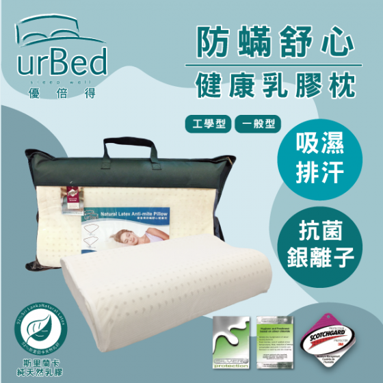 UrBed-優倍得防螨舒心健康乳膠枕【一般型/工學型】