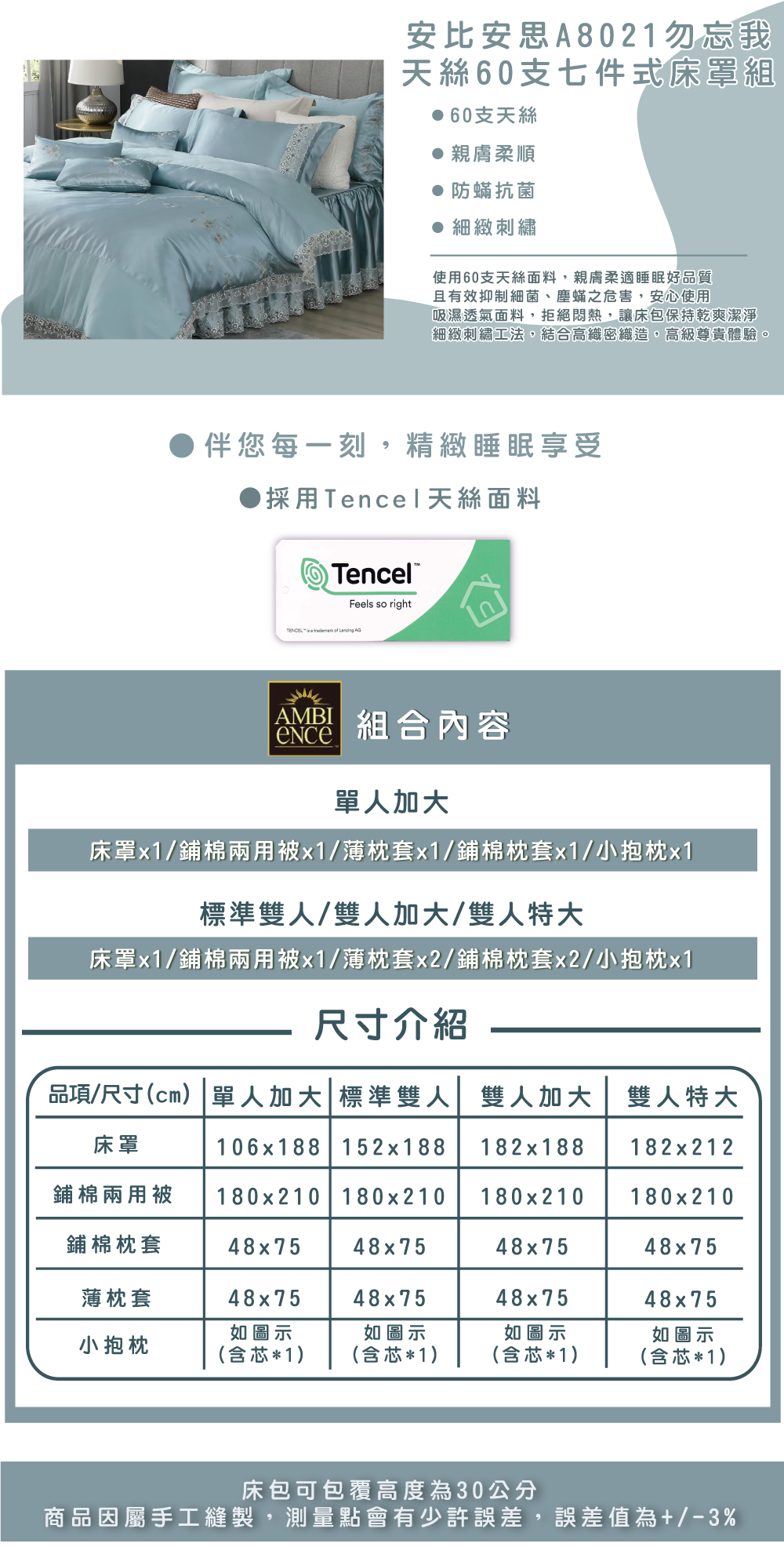 安比安思A8021勿忘我天絲60支七件式床罩組