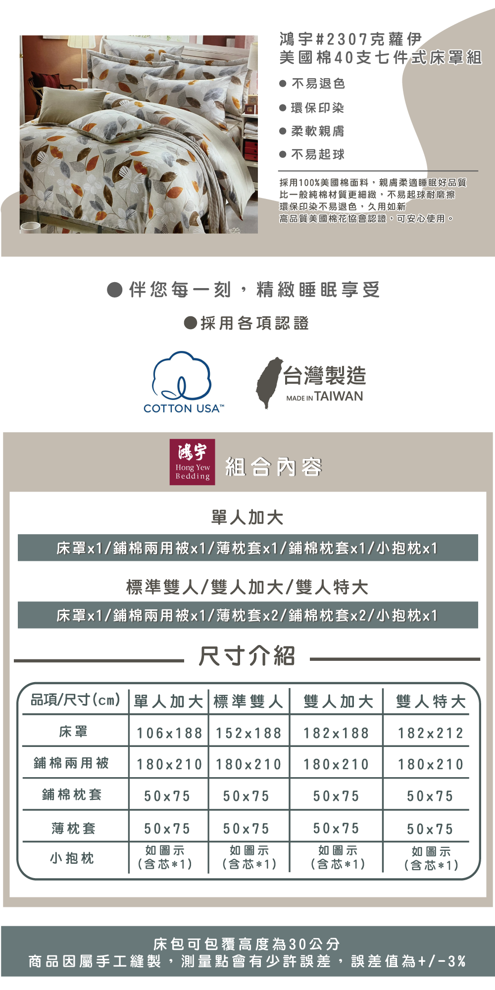 鴻宇#2307克蘿伊美國棉40支七件式床罩組