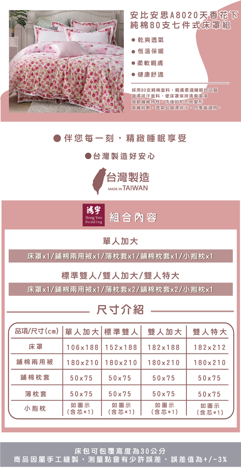 安比安思A8020天香花下純棉80支七件式床罩組