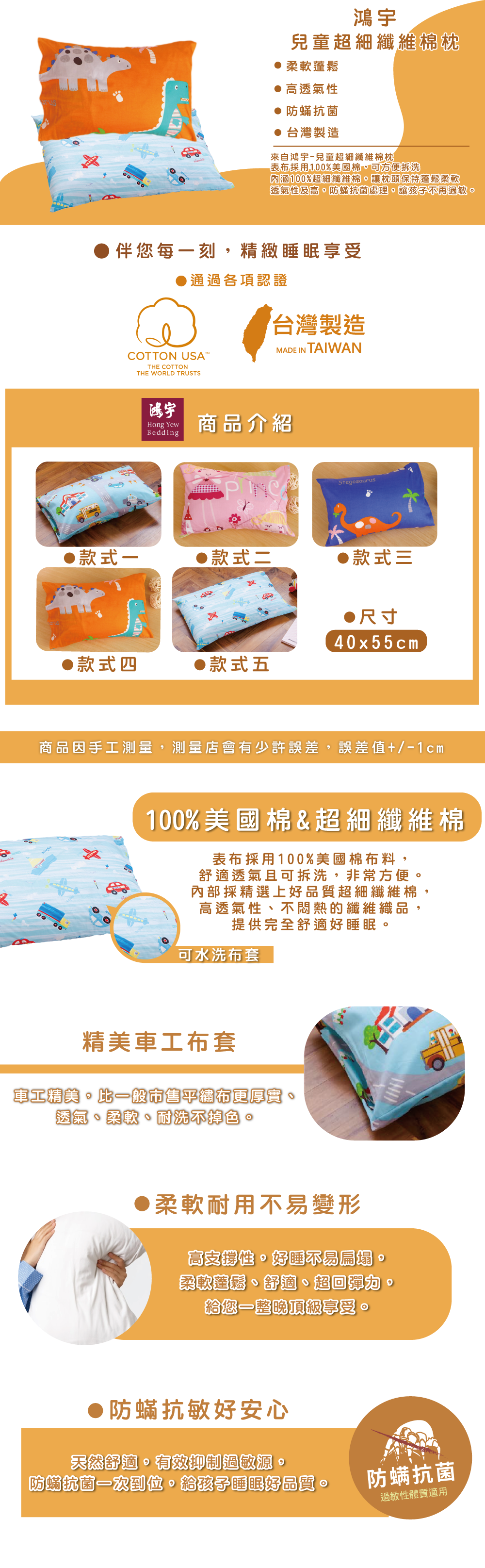 • 表布:100%美國棉(可拆洗)