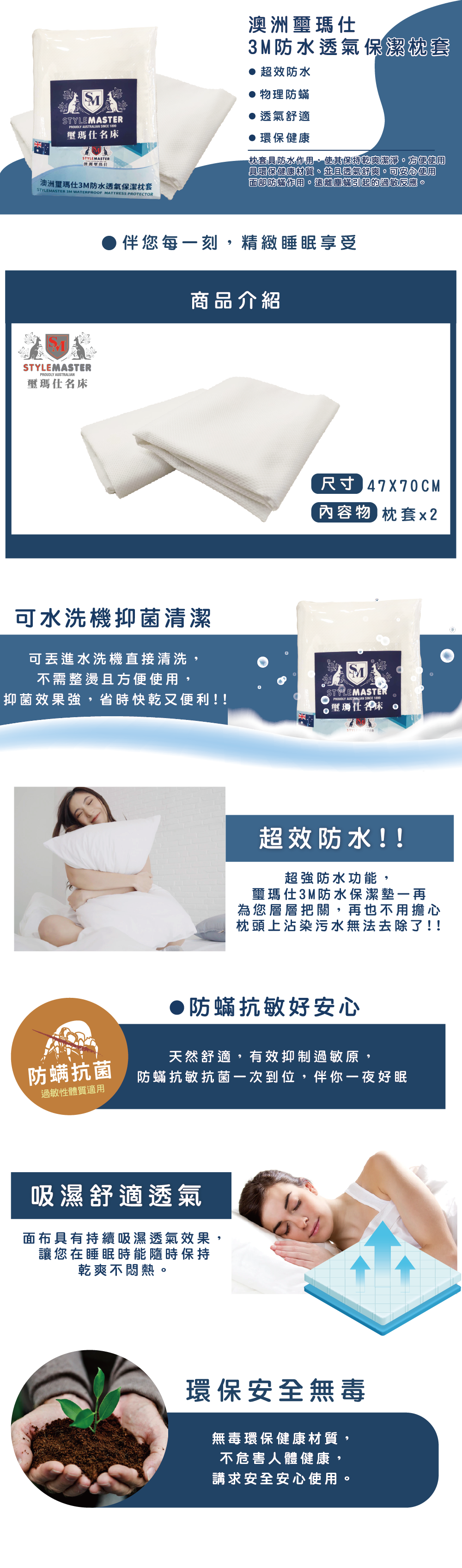 STYLEMASTER-澳洲璽瑪仕3M防水透氣保潔枕套