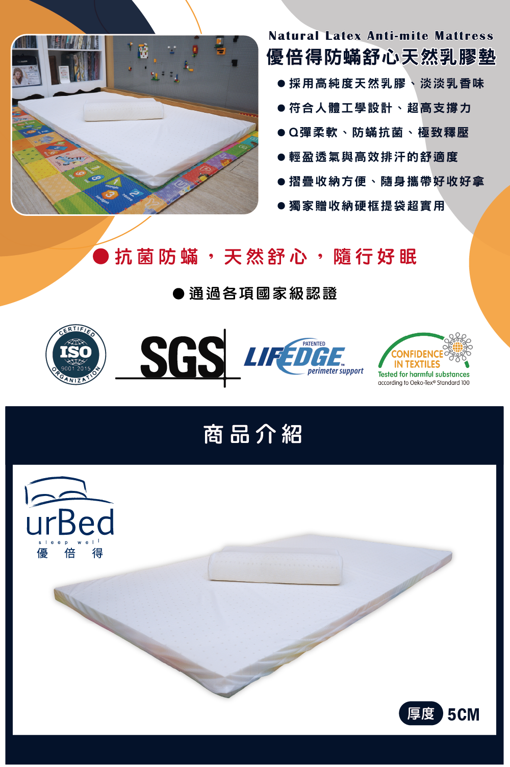 【免運】UrBed優倍得系列-防螨舒心天然乳膠墊
