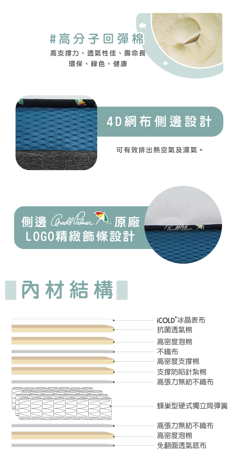 • 日本獨家ICOLD專利冰晶表布,快速吸收散熱,有效降低體感溫度。