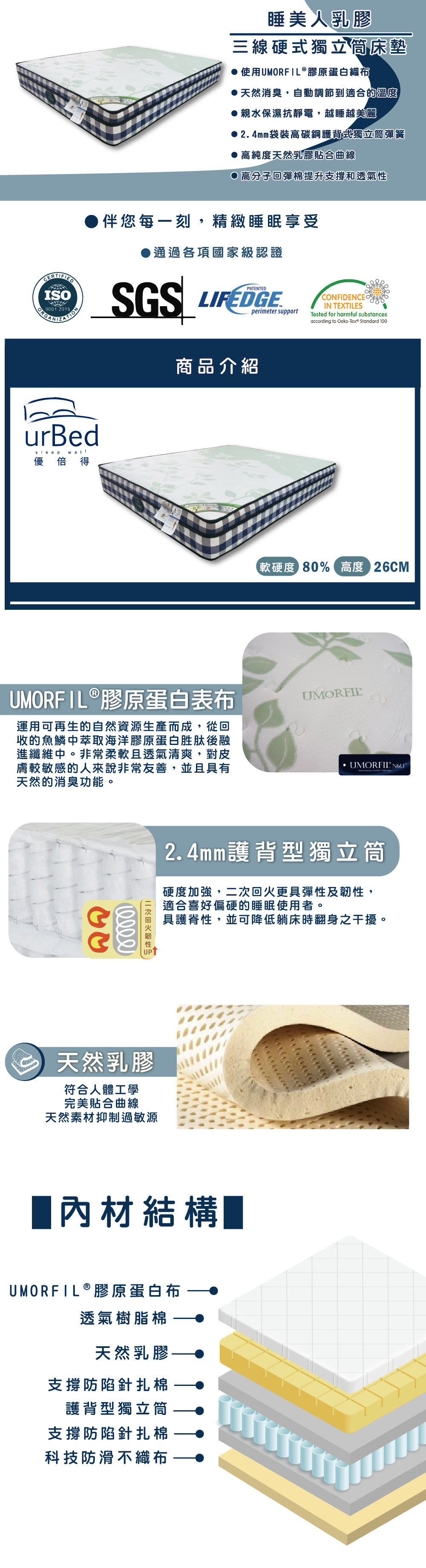 馬上好眠☁︎UrBed優倍得系列-睡美人乳膠三線硬式獨立筒