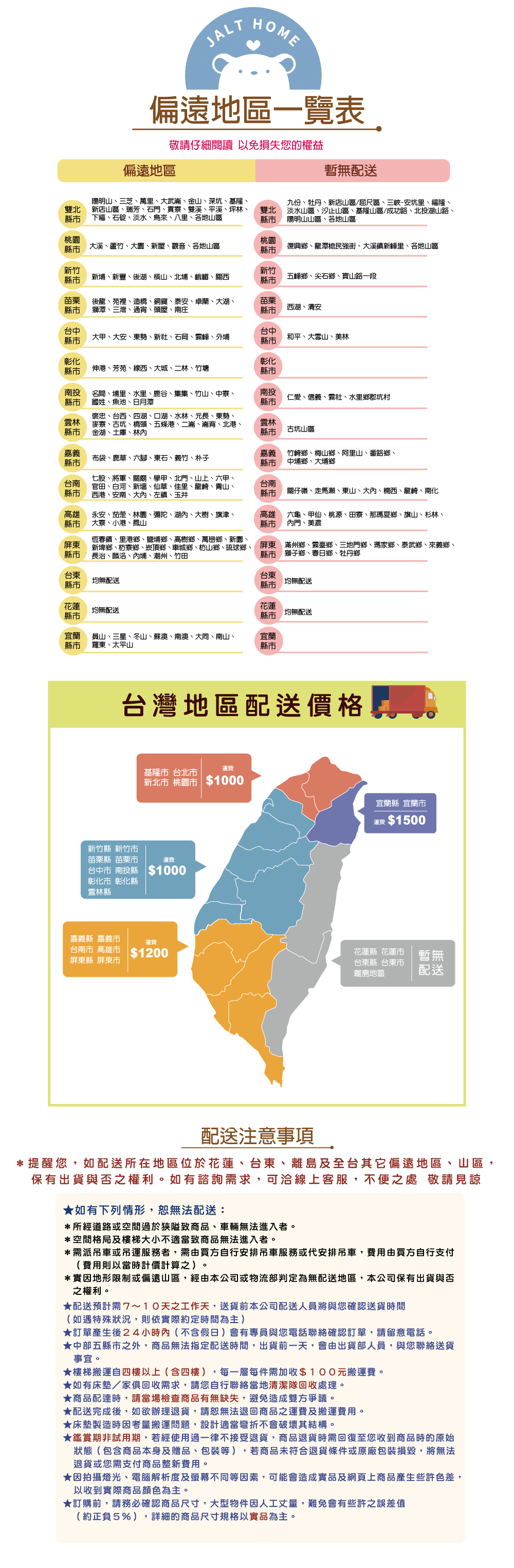 【非床墊商品】配送方式