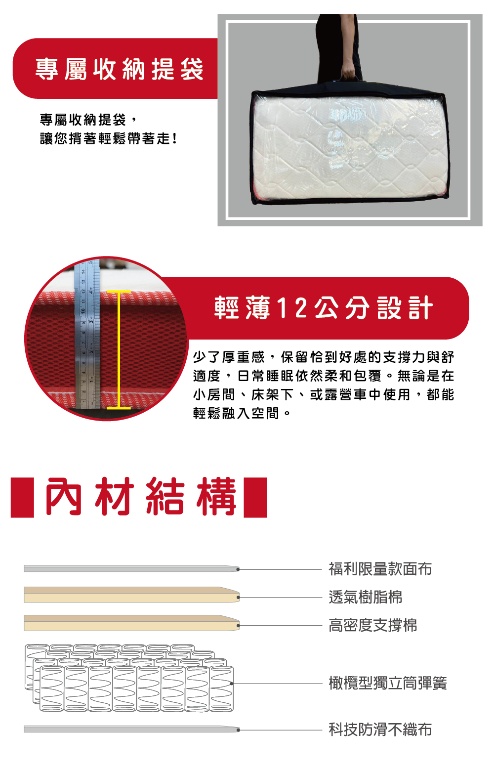 • 床墊高度:12cm