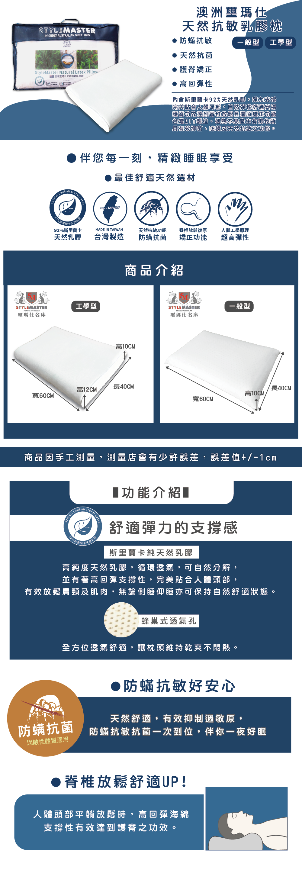 馬上好寢☪︎STYLEMASTER-澳洲璽瑪仕天然抗敏乳膠枕【一般型/工學型】