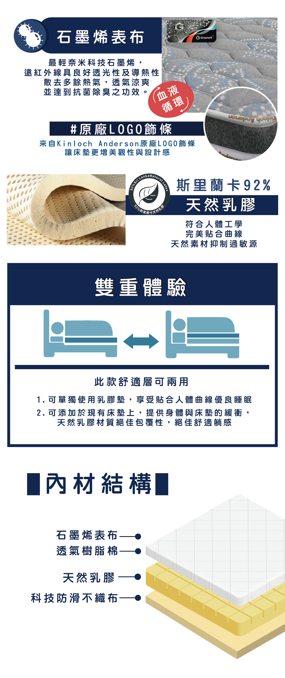 KinlochAnderson金‧安德森-皇家石墨烯超導能量乳膠舒適層