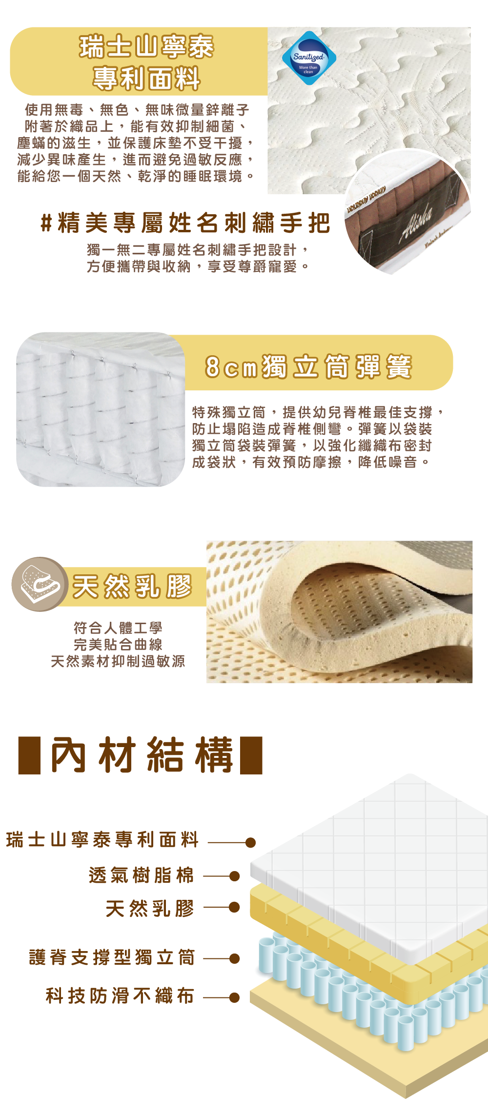 特殊橄欖型獨立筒,適合幼兒柔軟脊椎