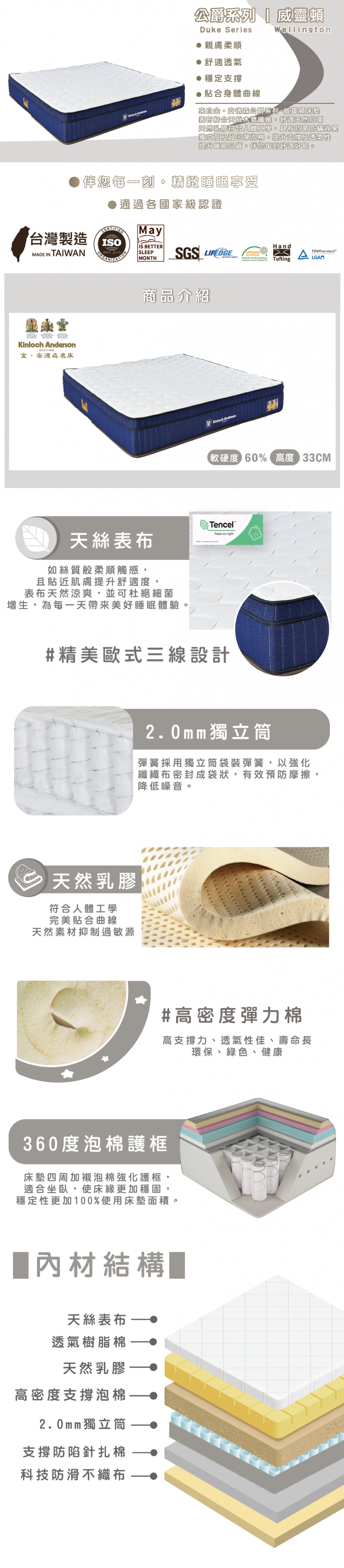 • 床墊高度:33cm